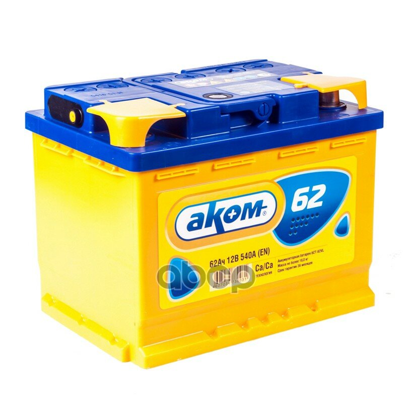Аккумулятор Аком AKOM 6СТ-62 VL Евро, 242x175x190, обратная полярность, 62 Ач