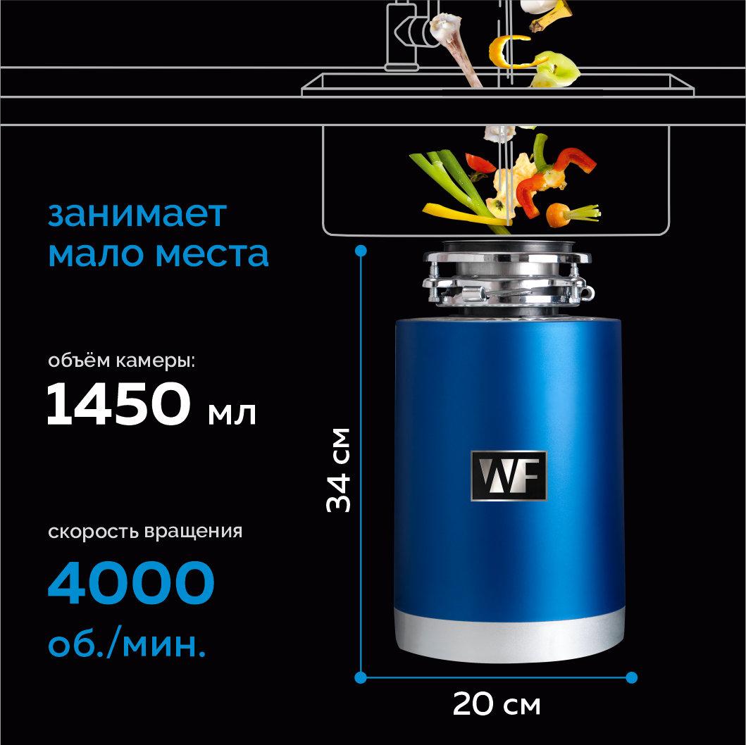 Измельчитель пищевых отходов WF F-62 Powerful кухонный бытовой под раковину 23 569 ₽