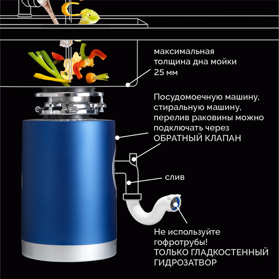 Измельчитель пищевых отходов WASTE FIGHTER F-62 Powerful, синий 34 950 ₽