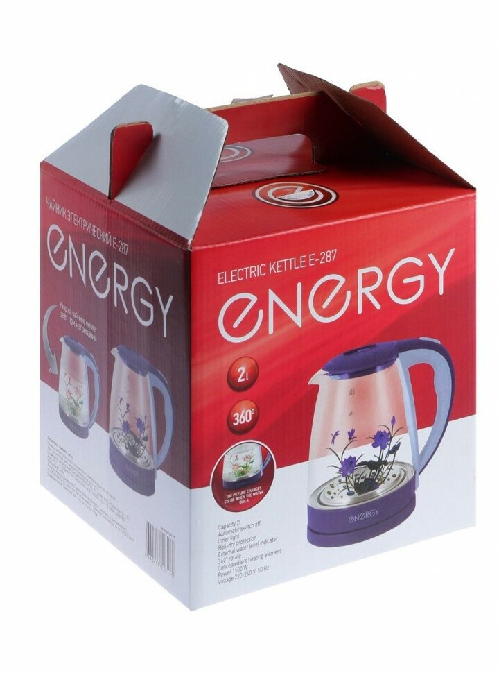 Отзывы на Energy Чайник электрический ENERGY E-287, стекло, 2 л, 1500 Вт, подсветка, синий