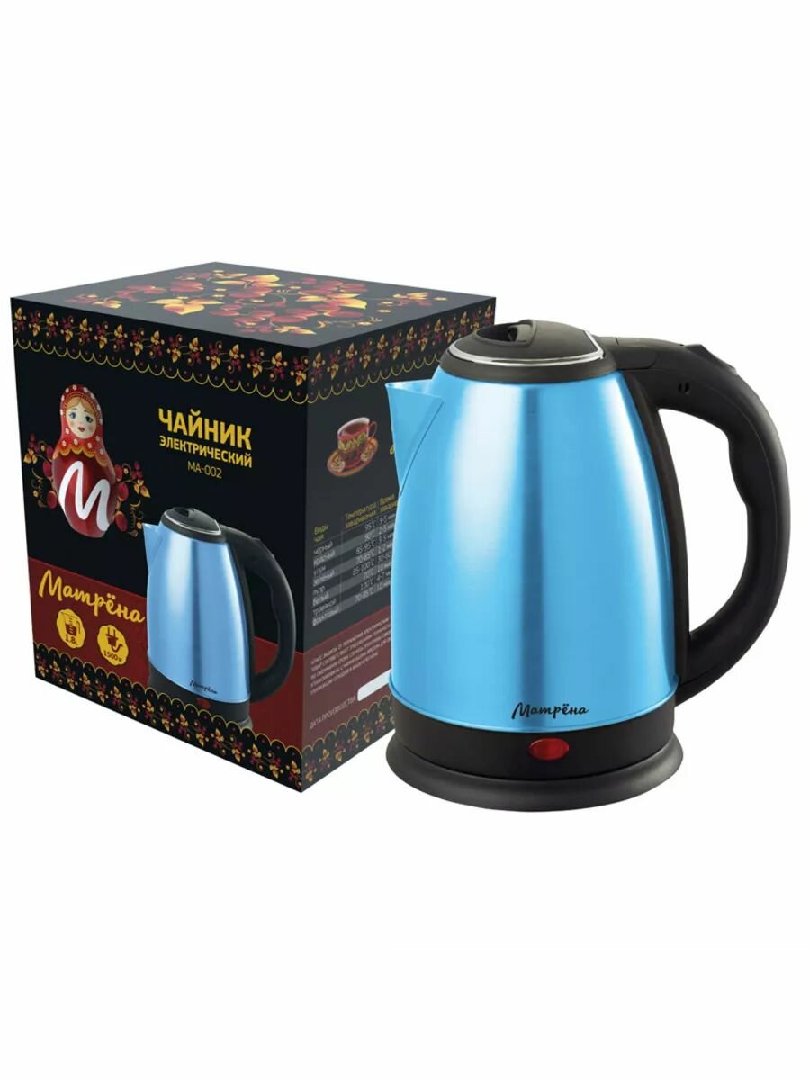 Чайник (матрёна MA-002 электрический (1,8 л) стальной голубой)