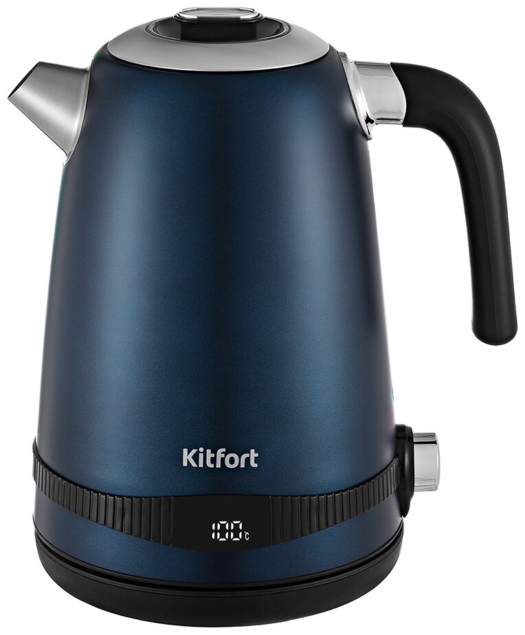 Чайник KITFORT КТ-6121-3, 1.7л,2200Вт, закрытый нагрев. элемент, LED диспл., терморегулятор, сталь, синий 3 219 ₽
