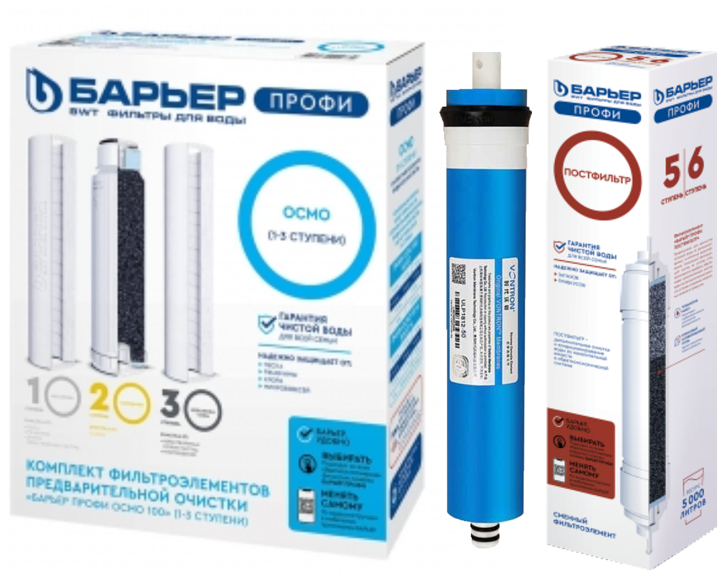 Комплект картриджей Барьер "Профи Осмо", для фильтров под мойку, 1-3 ступени