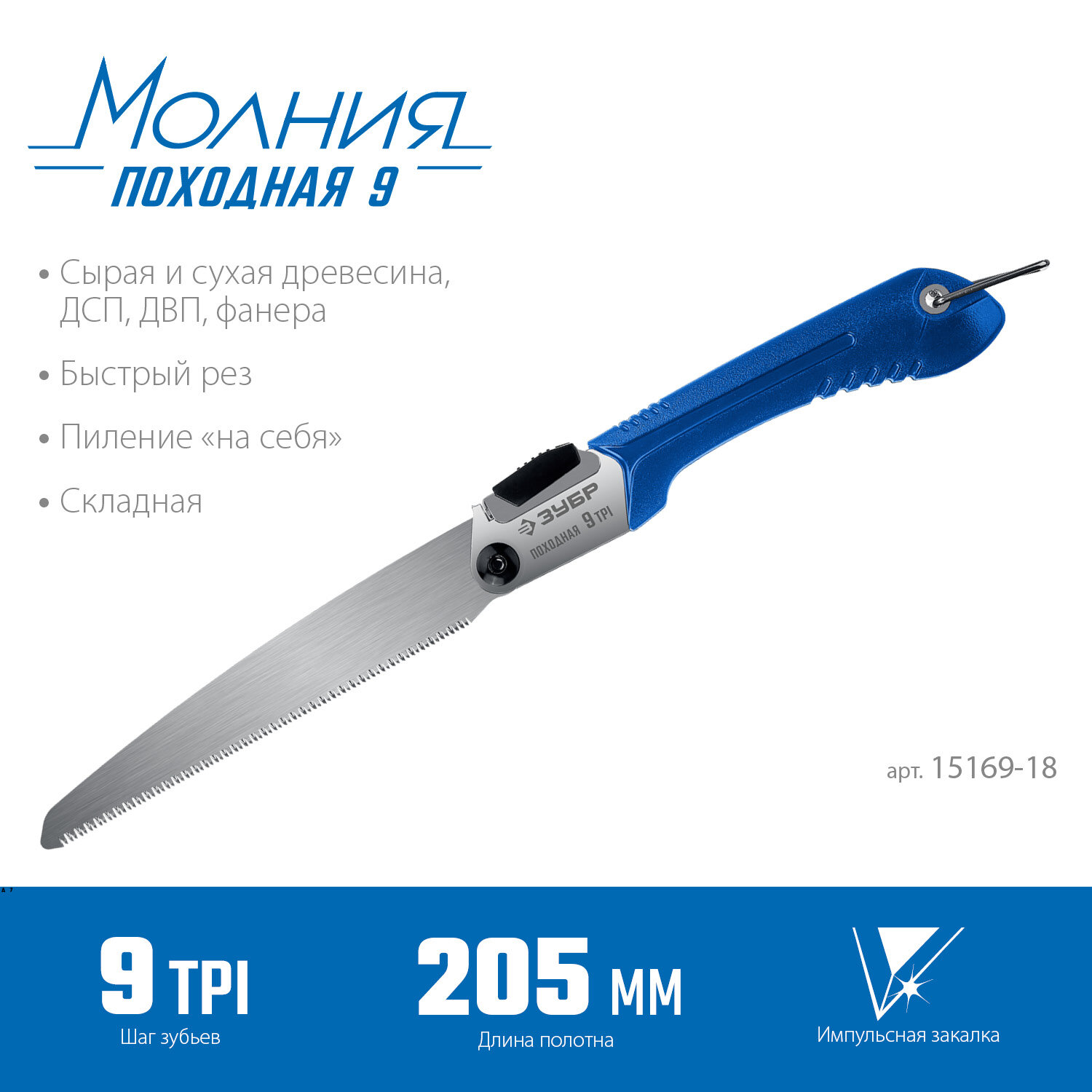 ЗУБР походная 9 ножовка для быстрого реза сырой древесины, 205 мм информация: