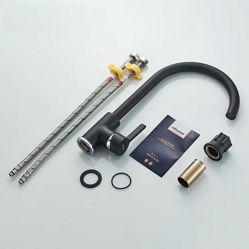 10 цен на Cмеситель для кухни Accoona A4594F, однорычажный, высокий излив, латунь, черный
