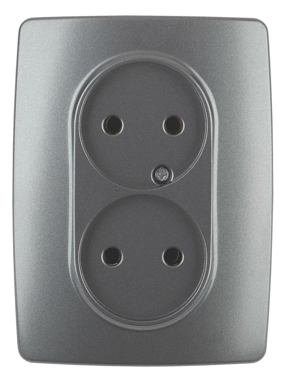 ЭРА 12-2107-12 Розетка 2X2P, 16A-250В, IP20, 12, графит Б0031244