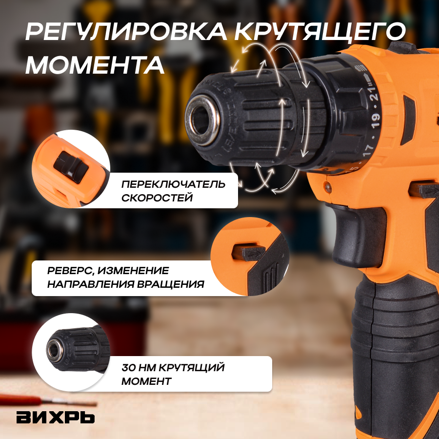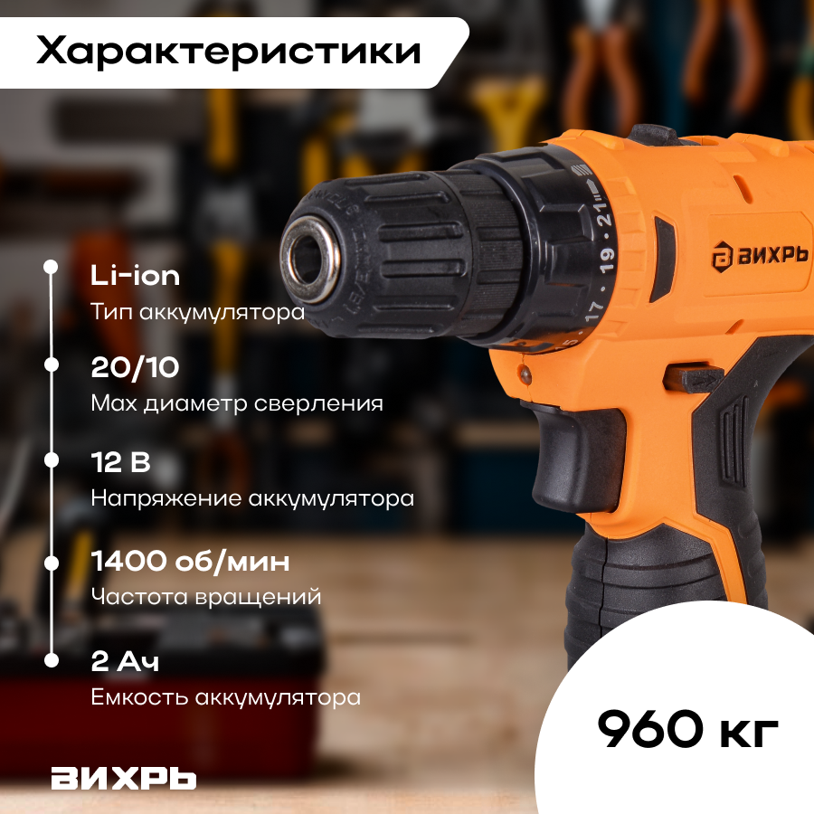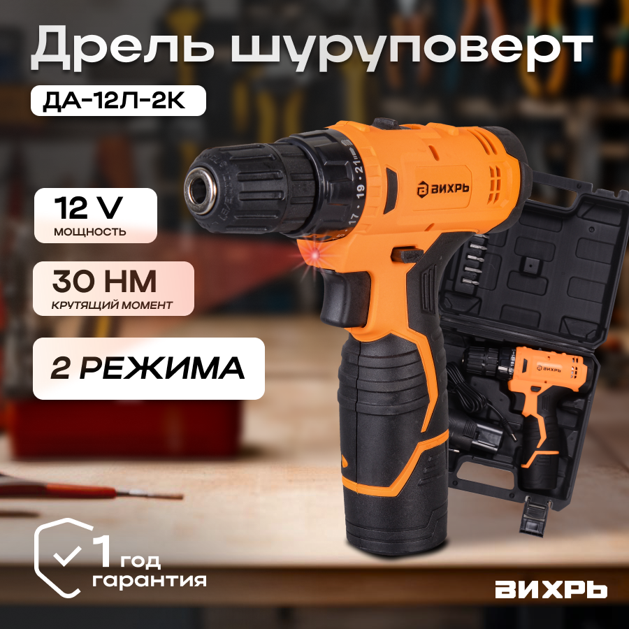 Аккумуляторная дрель-шуруповерт вихрь ДА-12Л-2К 2021