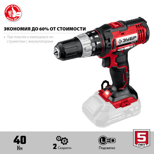 ЗУБР С1-18, 18 В, 40 Н·м, без АКБ, ударная дрель-шуруповерт (ДШУ-185)