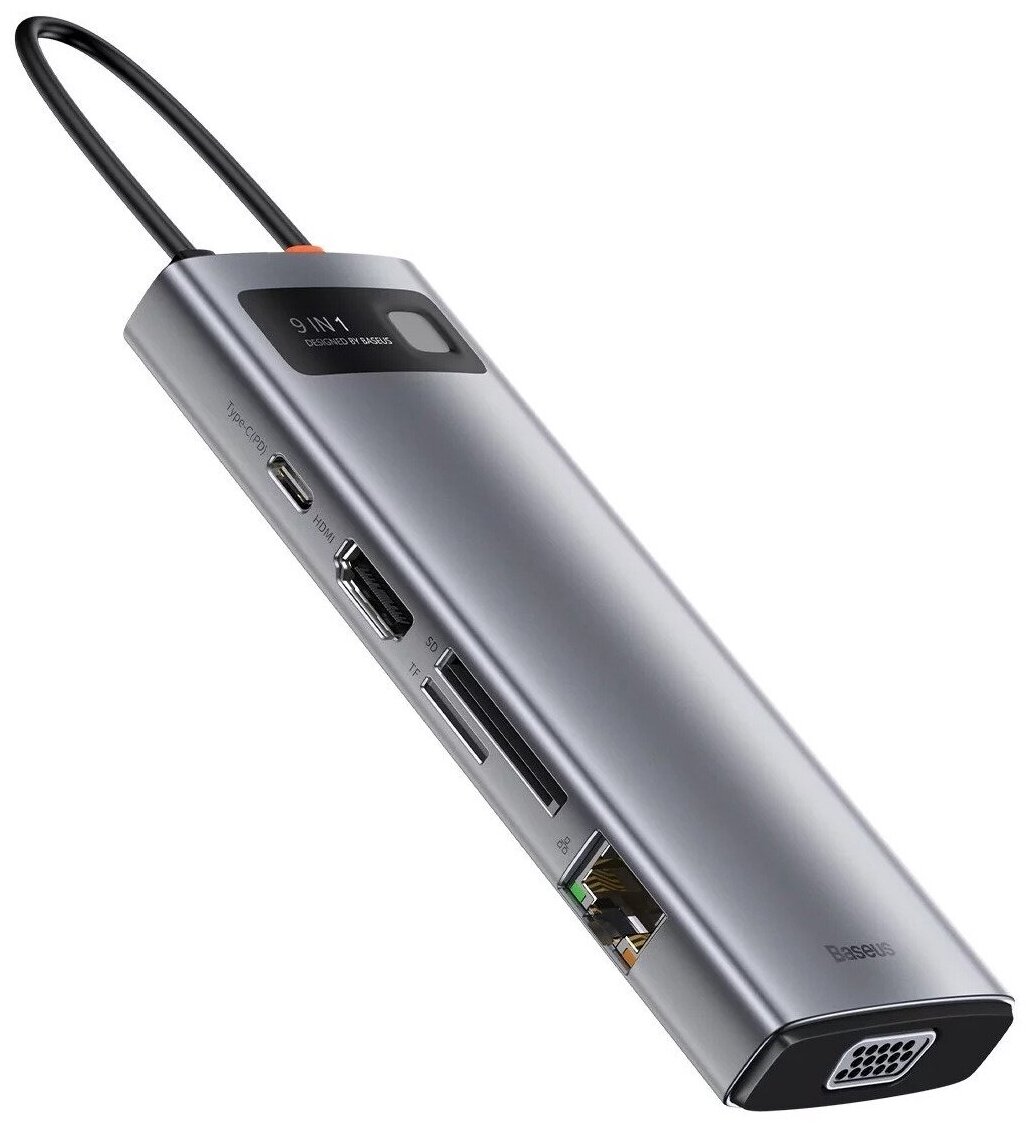 Отзывы на USB-концентратор / Переходник для ноутбука / планшета / телефона/ Хаб Baseus Metal Gleam Series 9-in-1 CAHUB-CU0G (SD, Micro SD, USB, USB-C, HDMI 4K 30Hz, VGA 1080P 60hz, Ethernet, Space Grey)