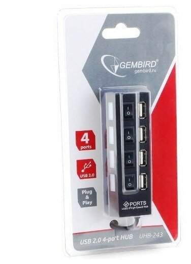 Разветвитель USB Gembird UHB-C243 AD хаб - концентратор 4 порта USB2.0 выключатели - 699 ₽