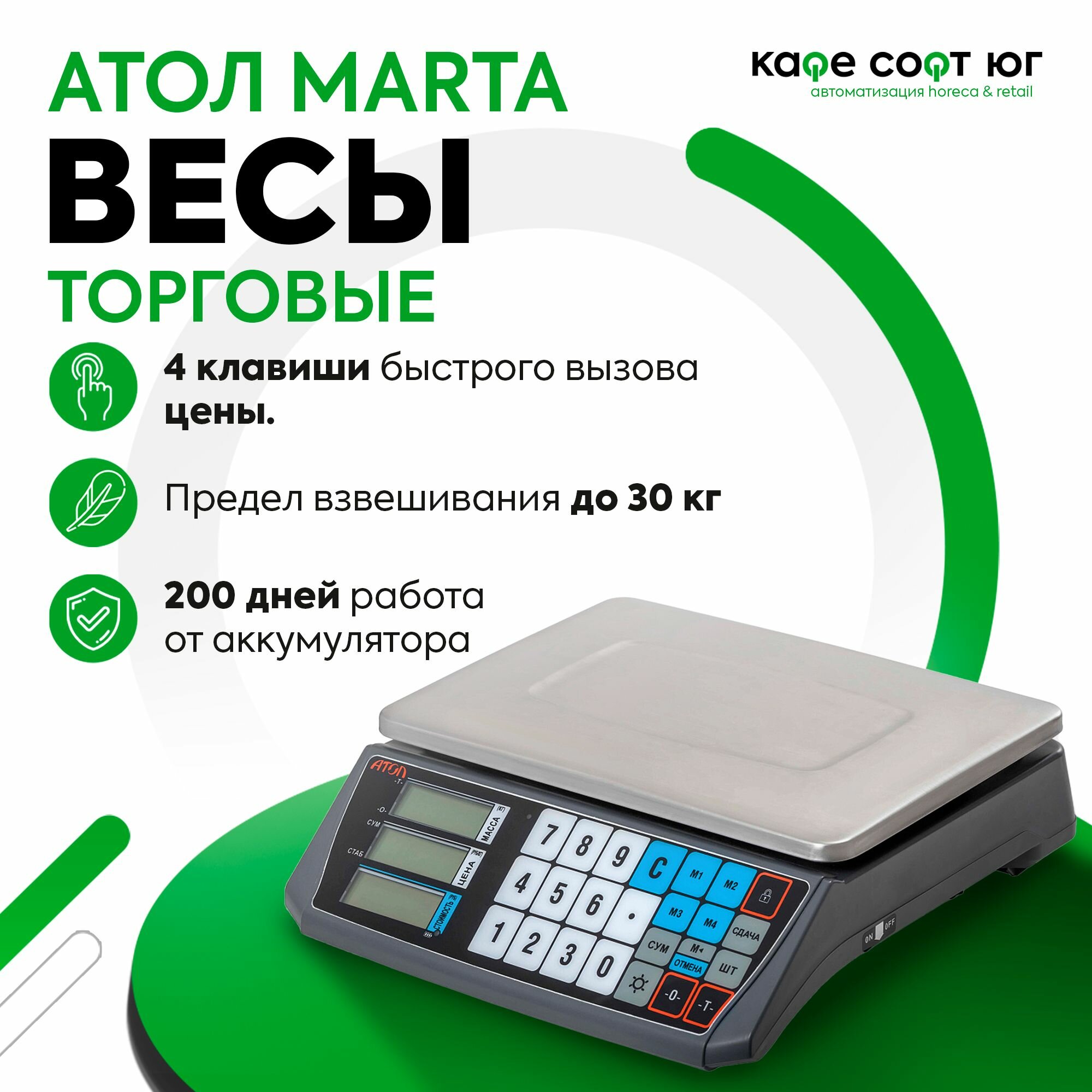 Мы выбрали 10 лучших цен на Весы торговые АТОЛ MARTA. Перед тем как купить Весы торговые АТОЛ MARTA посмотрите найденные предложения из Яндекс Маркета и других сайтов на основе XML фидов.