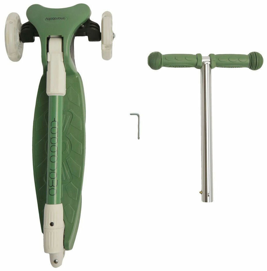 Самокат трехколесный детский TOPEMOUNT "Gold Scooter" , музыкальный, светящаяся дека, фара, Зеленый
