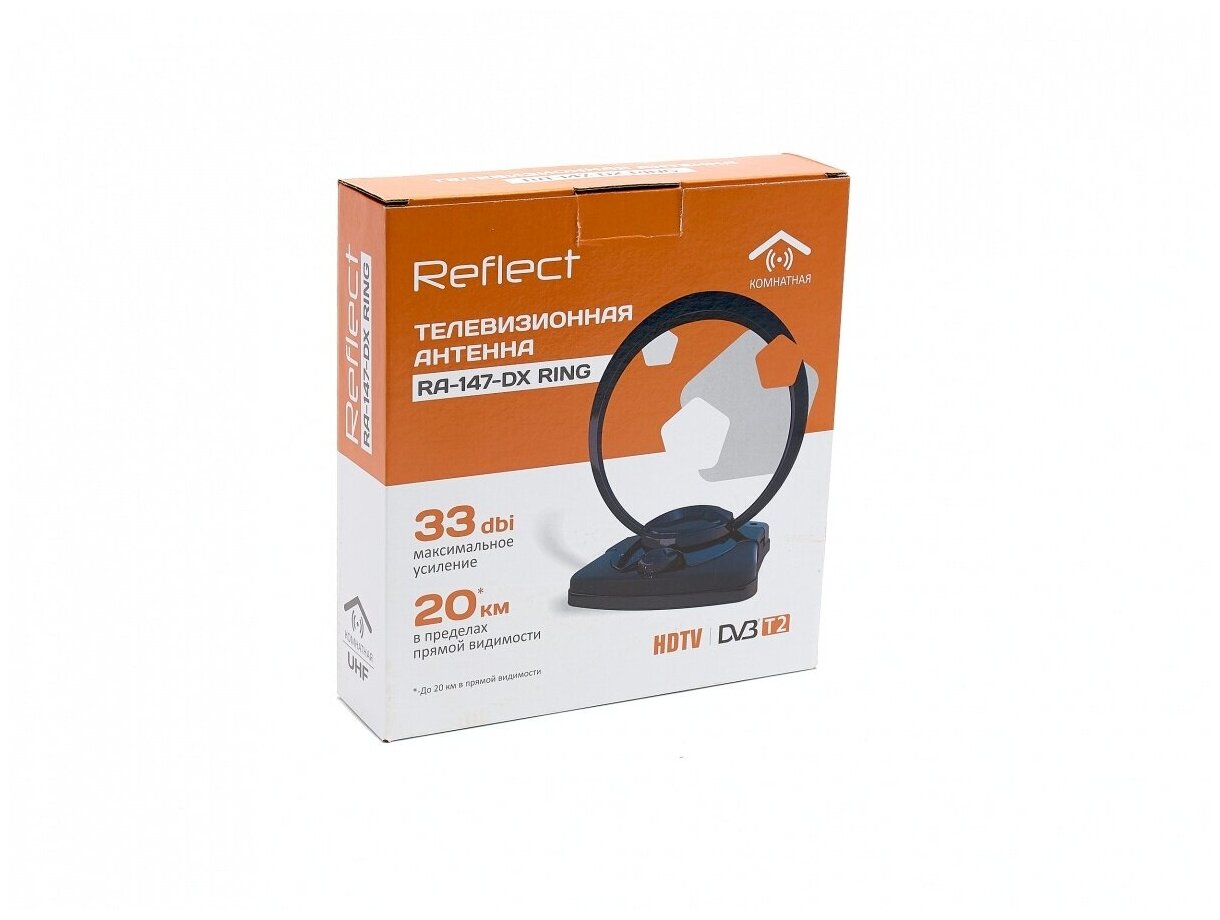 Антенны ТВ Reflect Антенна комнатная Reflect RING RA-147-DX (активная, ДМВ, с б/п, 33 дБи, коробка) информация: