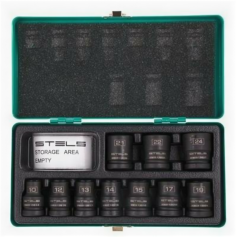 Набор торцевых головок Stels 13997, 10-24 мм, 1/2", 10 шт., ударные, шестигранные Stels 4746923 информация: