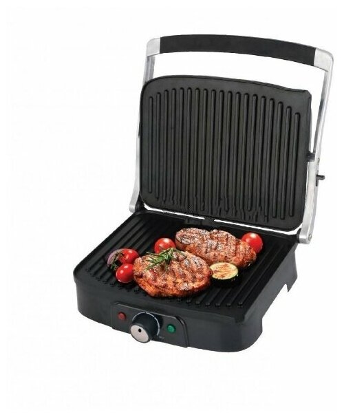 Гриль электрический, грильница электрическая, электрогриль с регулировкой температуры, защита от перегрева, регулировка наклона, черный