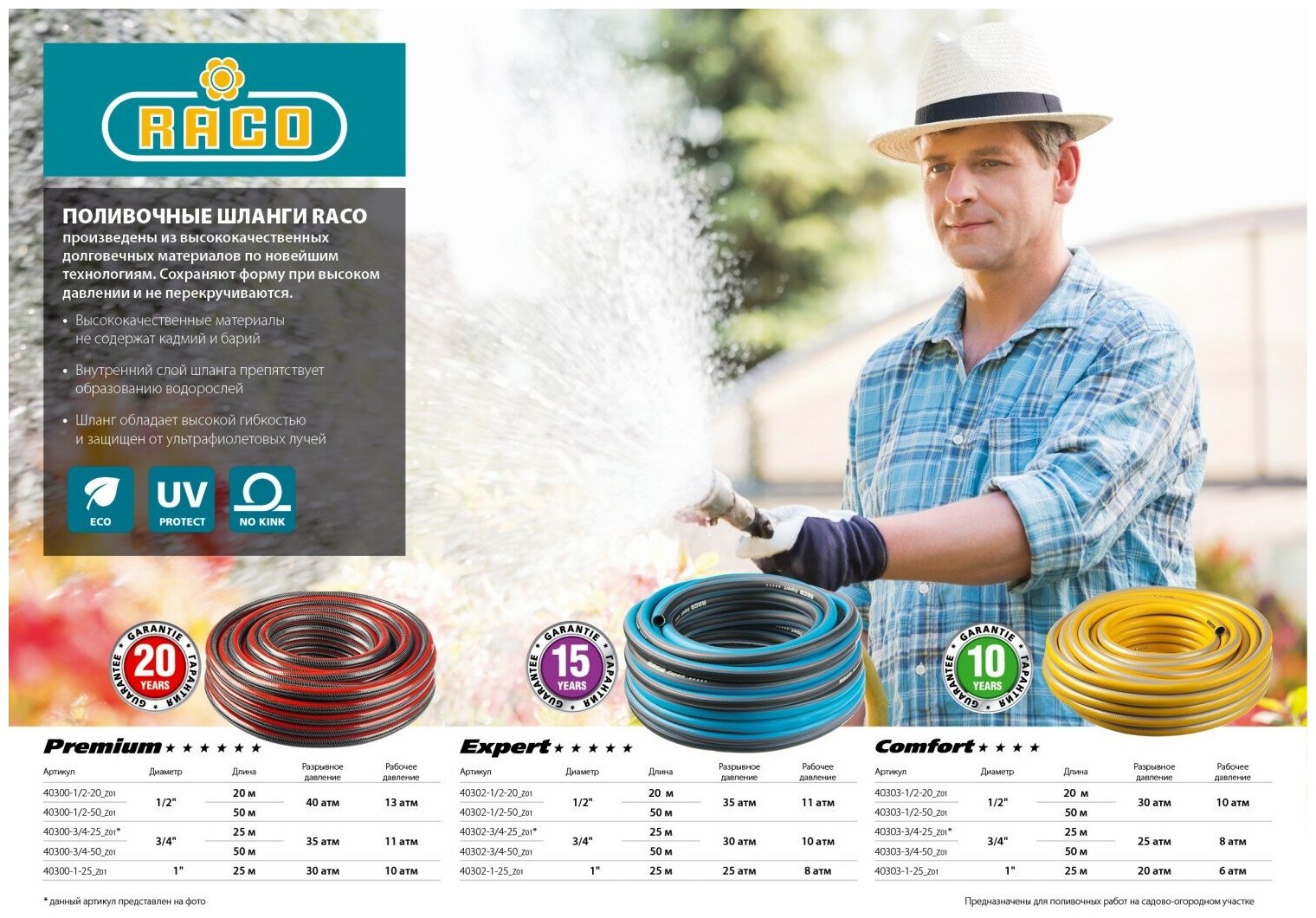 10 цен на RACO Шланг поливочный, 20атм., армированный, 3-х слойный, 1х25м RACO COMFORT, 40303-1-25_z01