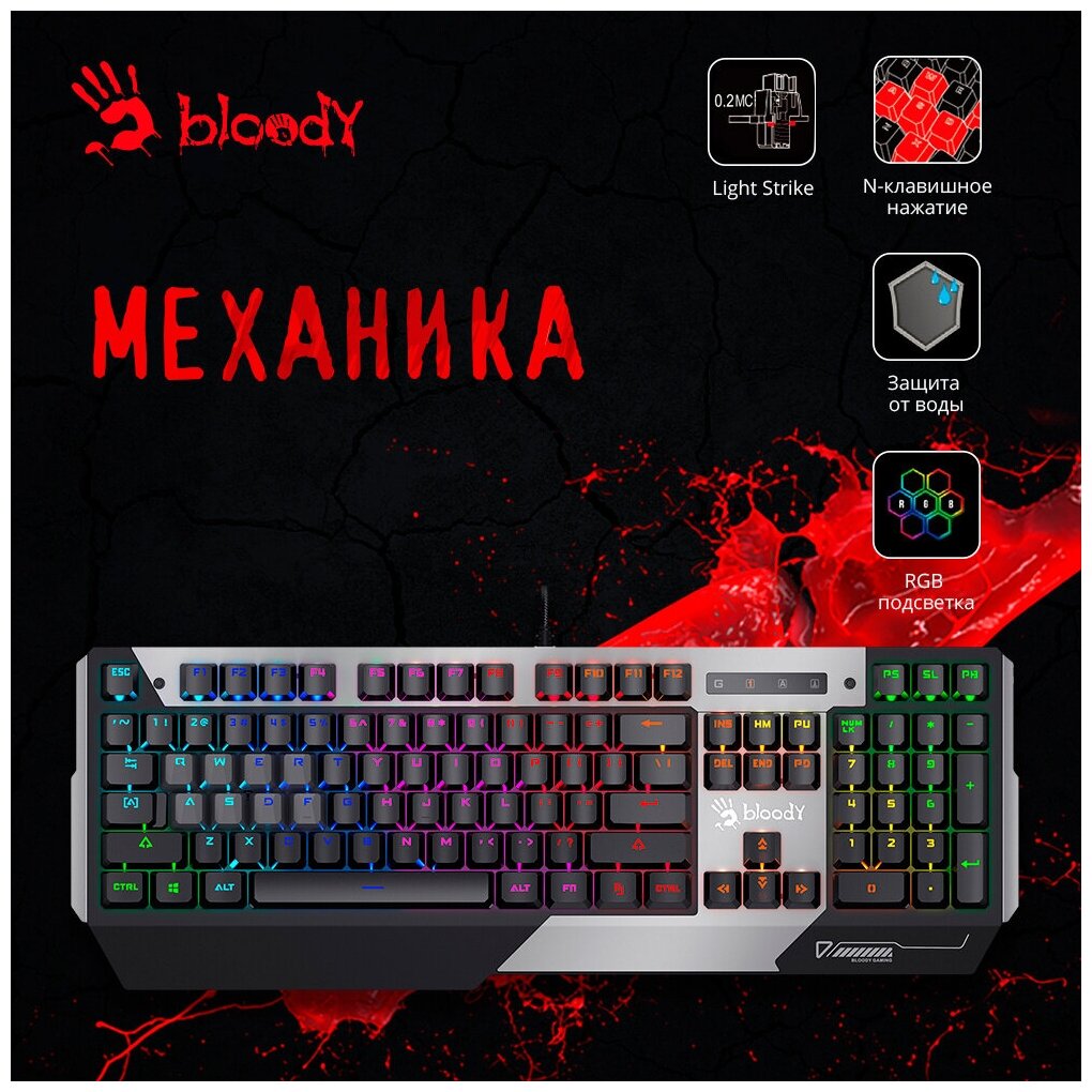 Клавиатура A4TECH Bloody B865R, USB, серый + черный