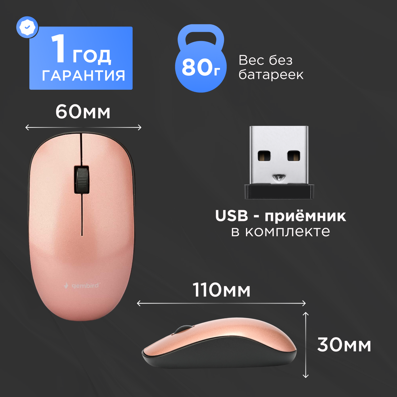 Беспроводная мышь Gembird MUSW-111-RG информация: