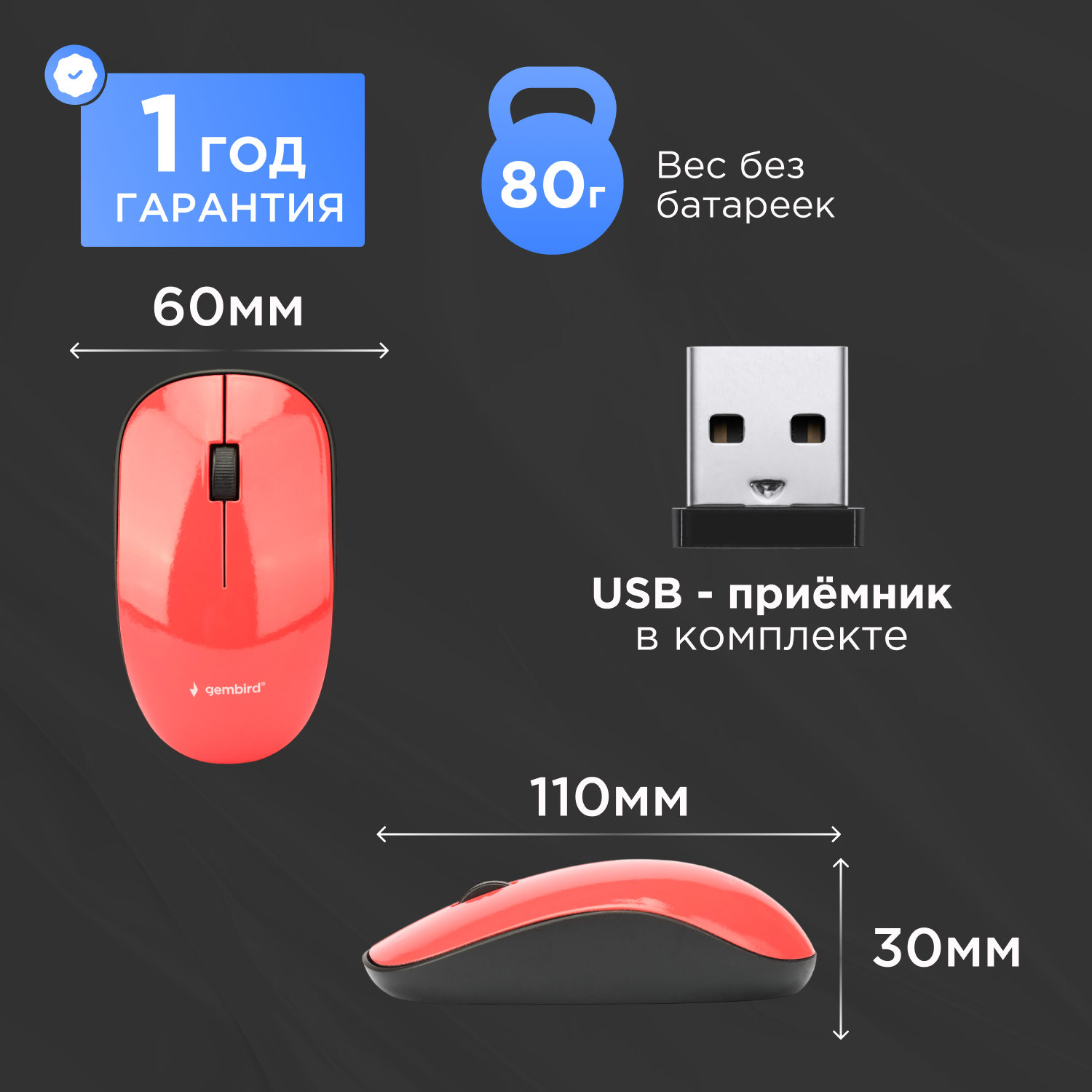 Мышь GEMBIRD (17372) MUSW-111-RG 1223906