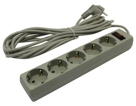 Удлинитель ExeGate EC-5-5G (5 евророзеток с заземлением, 5м, защита от перегрузки, выключатель с подсветкой, серый) EX285800RUS