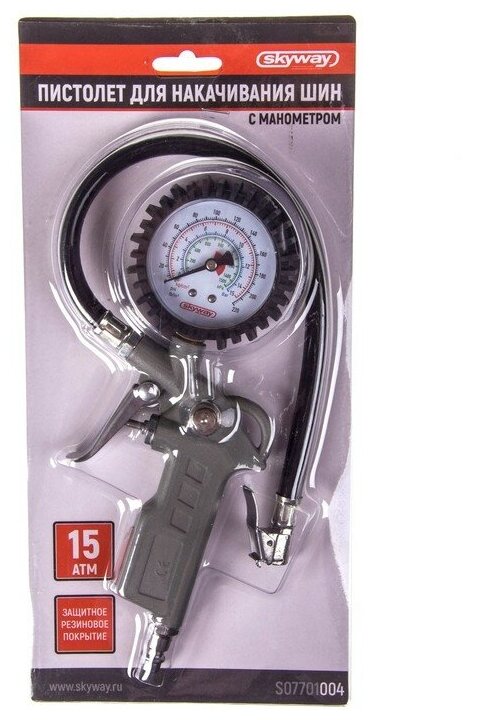 Пистолет для накачивания шин SKYWAY с манометром 14,97 АТМ быстросъемное соединение информация: