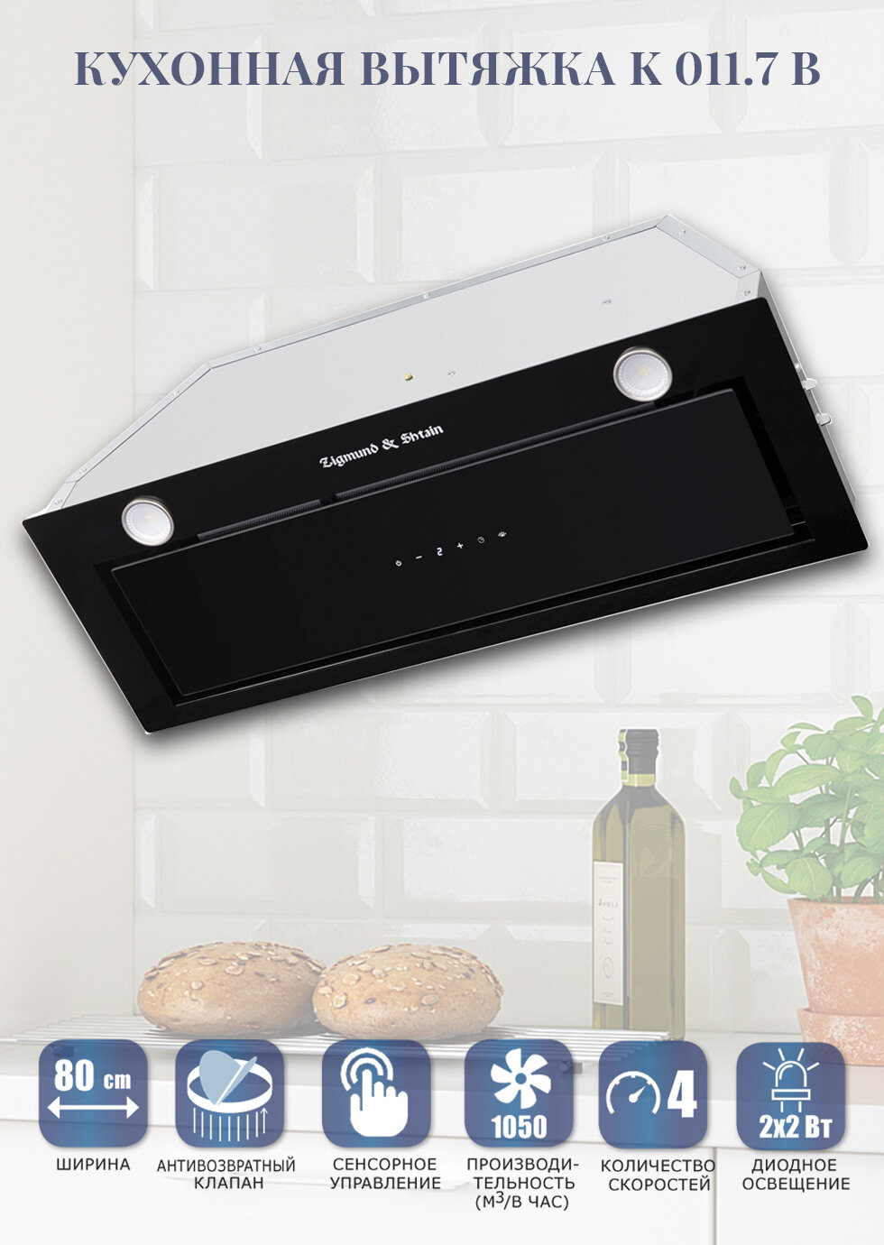 Встраиваемая вытяжка Zigmund & Shtain K 011.7 B, цвет корпуса черный, 80 см 27 990 ₽