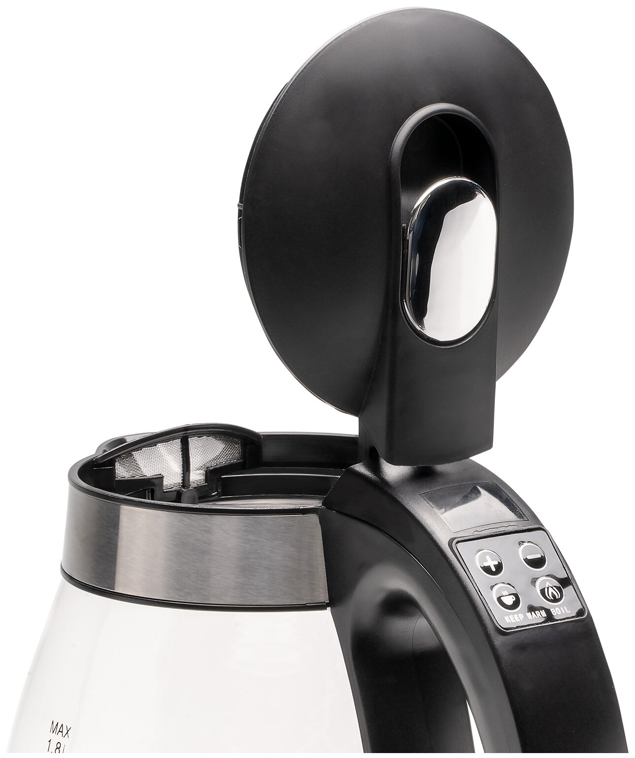 10 цен на GALAXY GL 0556 Чайник электрический со стеклянной колбой объем 1,8 л, мощность 2200 Вт, скрытый нагревательный элемент, корпус из термостойкого стекла, фильтр из нержавеющей стали 18/10,светодиодная подсветка, регулятор температуры нагрева (40-100 °С),фун