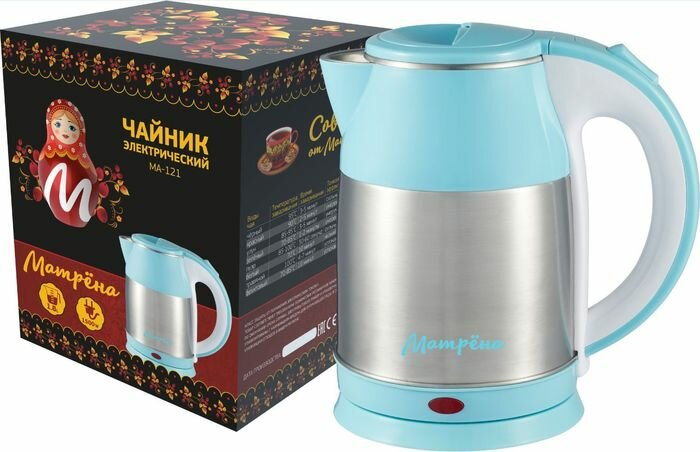 Чайник матрёна MA-121 электрический (1,8 л) стальной голубой