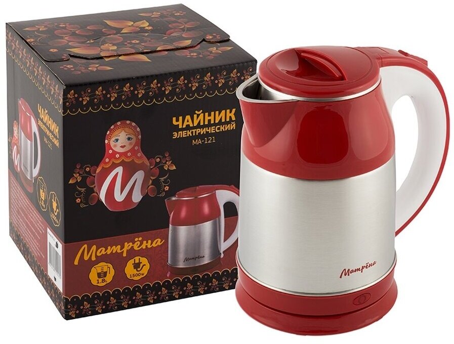 Чайник матрёна MA-121 электрический (1,8 л) стальной красный информация: