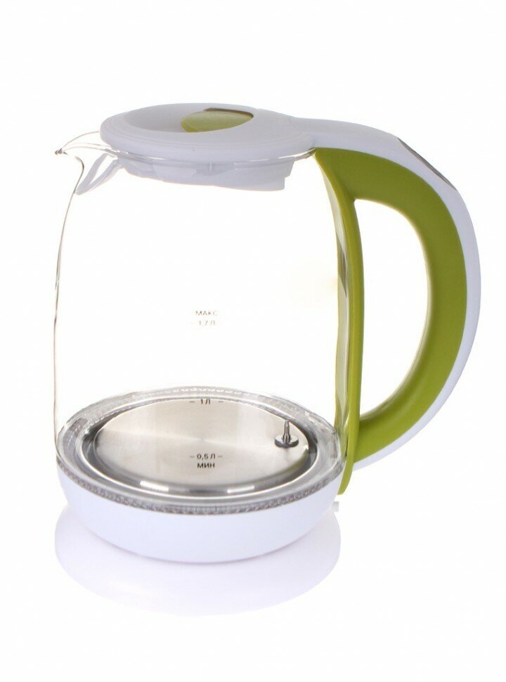 Чайник электрический KT-6140-2, стекло, 1.7 л, 2200 Вт, подсветка, бело-салатовый 3 089 ₽