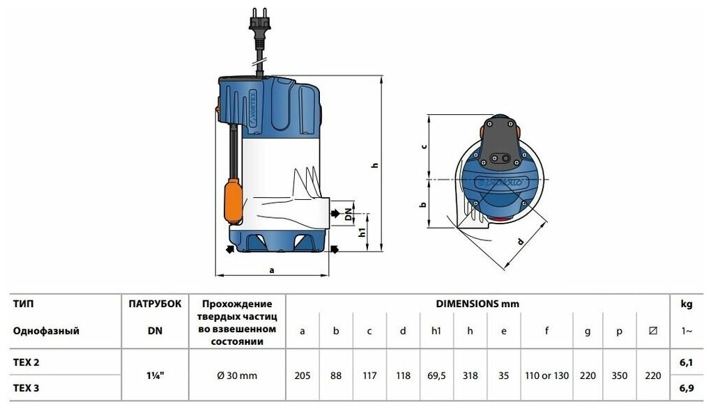 Дренажный насос Pedrollo TEX 2 (370 Вт) информация: