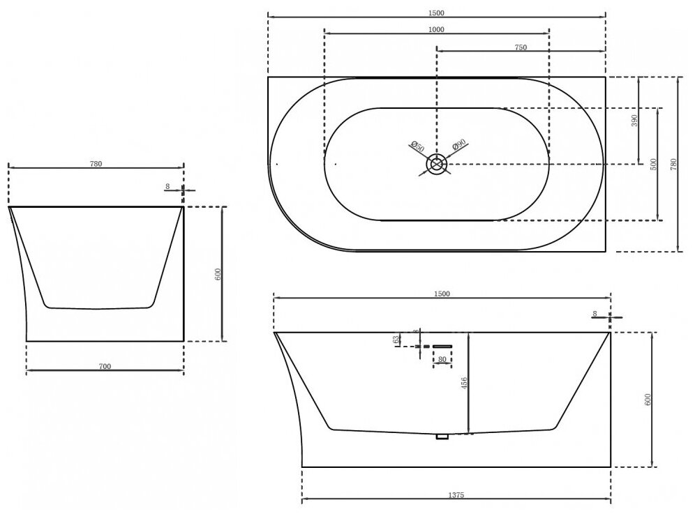 Акриловая ванна ABBER 1500x780 AB9258-1.5 R
