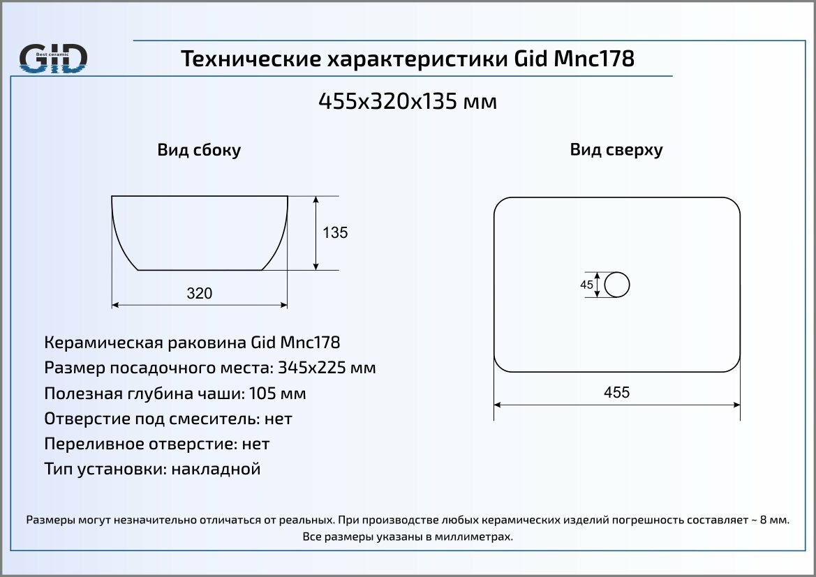 Раковина Gid Mnc178 информация: