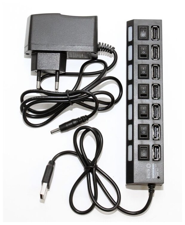 Разветвитель USB 5Bites HB27-203PBK хаб - концентратор 7 портов USB2.0 + выключатели + блок питания линейка - чёрный