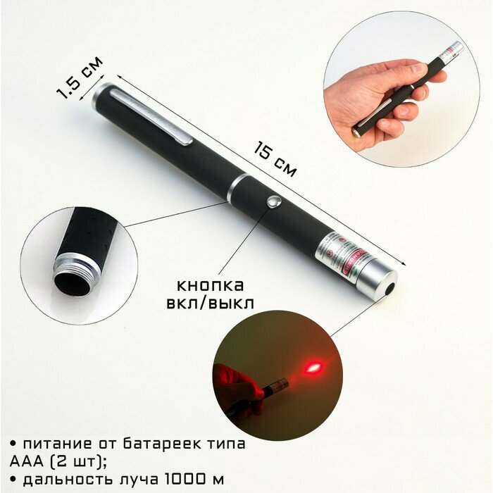 Лазерная указка 532 нм, дальность 1000 м, 2 ААА, 15 х 1.5 см, красный луч информация: