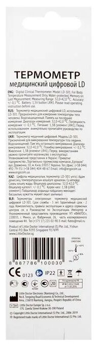Little Doctor Термометр электронный Little Doctor LD-301, водонепроницаемый, память, звуковой сигнал информация: