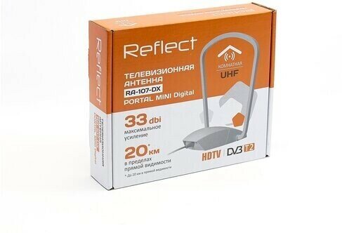 reflect portal mini digital ra-107-dx(активная, 5v, dvb-t2, с б/п, 33 дби, коробка антенна комнатная