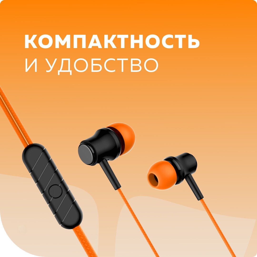 Наушники вакуумные для AUX разъема с микрофоном длина 1.2м More Choice G36 Orange