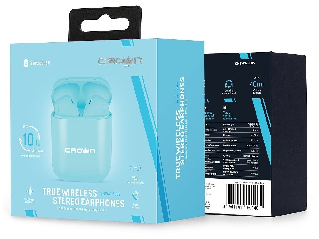 Беспроводные наушники CROWN MICRO CMTWS-5005, blue информация: