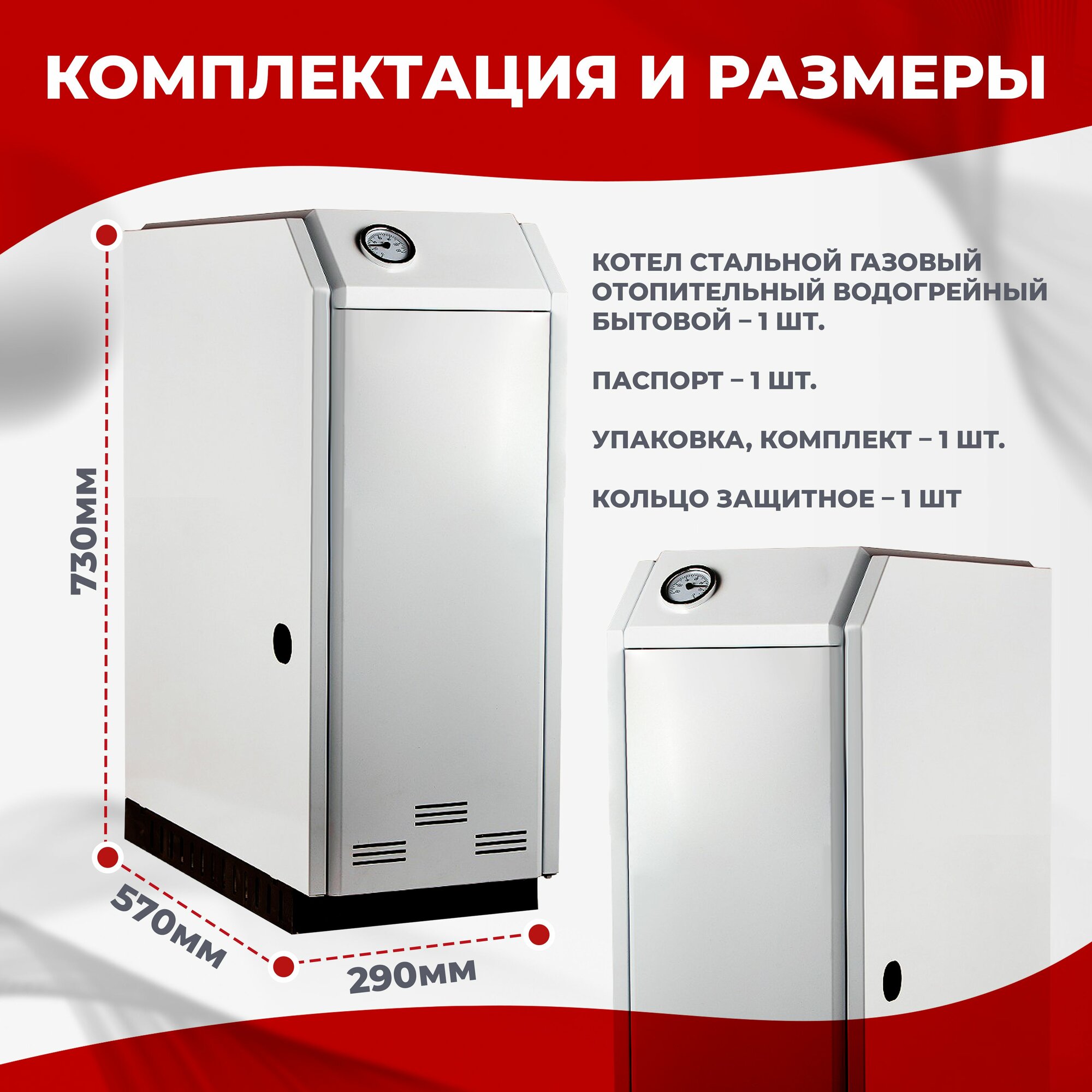 | Тип отопительного котла | газовый / конвекционный |