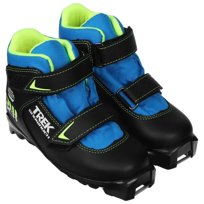 10 цен на Trek Ботинки лыжные TREK Snowrock, SNS, искусственная кожа, цвет чёрный/синий, лого лайм-неон/белый, размер 30