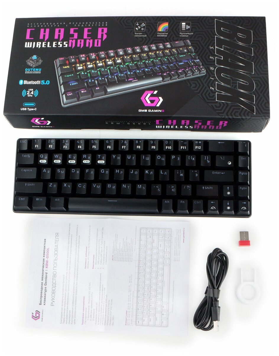 Механическая беспроводная клавиатура GEMBIRD KBW-G500L (черный) информация: