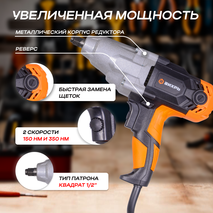Ударный гайковерт ВИХРЬ ГС-1100, 1100 Вт, без аккумулятора