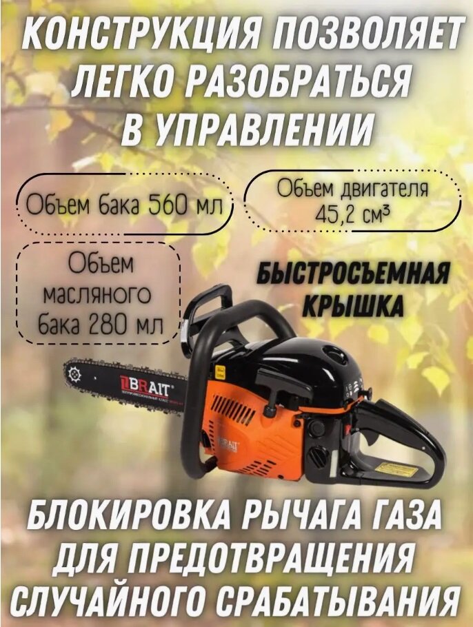 Отзывы на Бензопила BRAIT BR-4515B (15'; 0,325 1.5 64зв) Металлический корпус