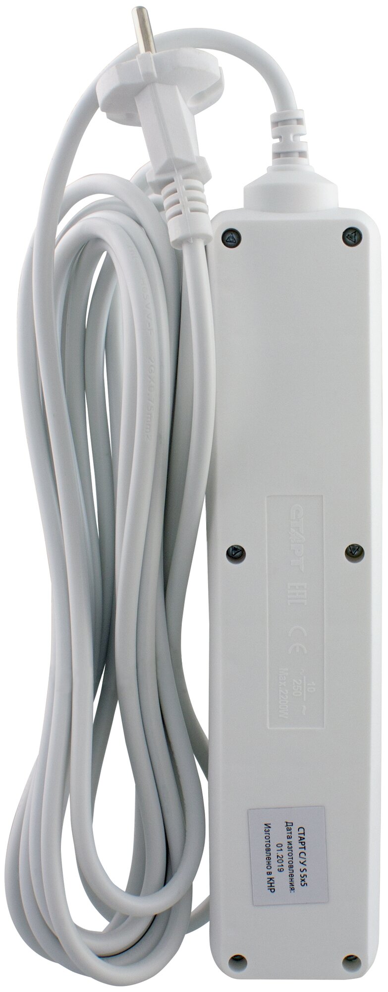 Сетевой удлинитель старт, 5 розеток, 5 м. (ПВС 2*х0.75 мм), 10А информация: