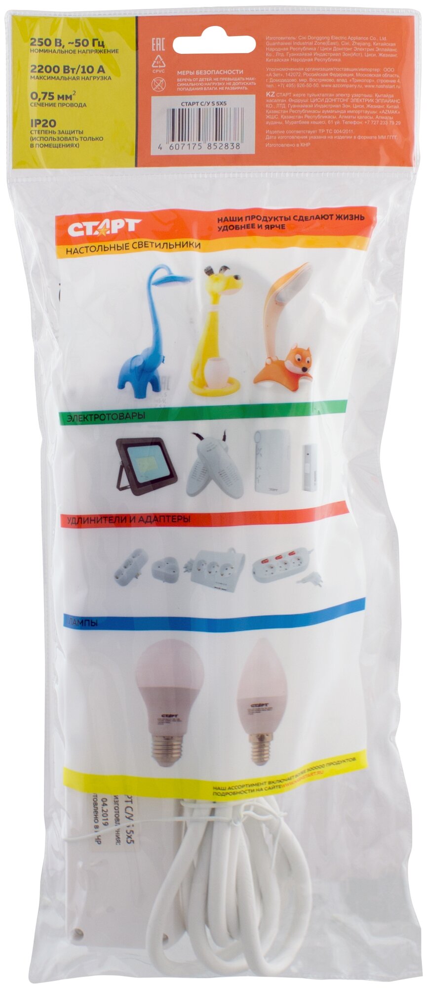 Удлинитель СТАРТ S 5x5-Z, 5 розеток, 5 м, с/з, 10А / 2200 Вт
