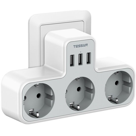 Сетевой фильтр без провода TESSAN TS-301-DE-C 3 розетки 2500 Вт + USB зарядка 2 порта до 3А + 1порт USB-C серый