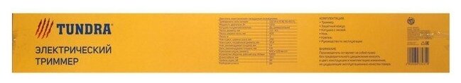 Электротриммер тундра, разборная штанга, катушка полуавтомат и диск, скос 400 мм, 1200 Вт 6033231 информация: