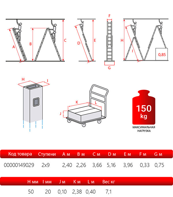 Лестница алюминиевая трансформер двухсекционная 9 ступеней Новая высота бытовая информация: