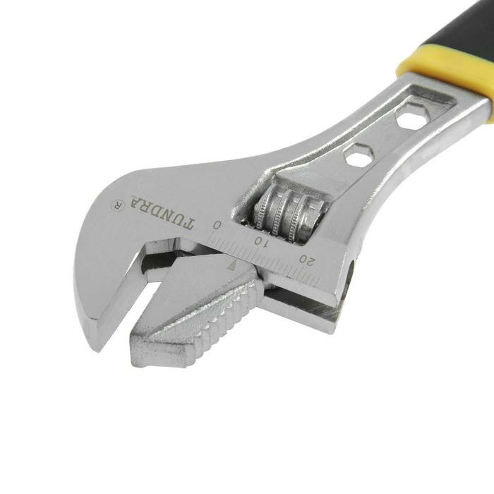 10 цен на Тундра Ключ разводной тундра, 2 варианта зажима, гайки 4-6-12 мм, 2К рукоятка, 200 мм